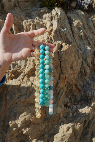 A collection of hand-strung gem-quality beads, each orb a universe unto itself, echoing the wholeness of the cosmos and the cycles of light, ocean, and soul.