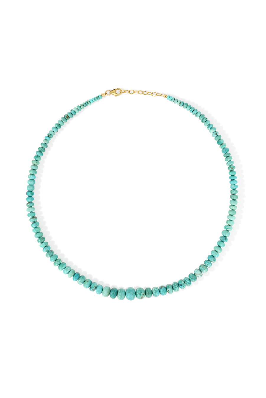 Authentic and full of character, this necklace features natural Mongolian turquoise beads ranging from 3mm to 10mm in a graduated silhouette. Treasured for centuries as a stone of truth, protection, and spiritual grounding, turquoise is believed to guard the heart while encouraging clarity and self-expression. Each bead carries its own unique markings and depth of color, making every necklace a one-of-a-kind reflection of nature’s artistry.